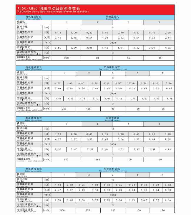 电动伺服缸性能参数